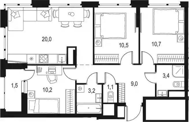 4-к.квартира, 68.1 м², 13 эт. в ЖК Микрогород «В лесу» Корпус 26/1