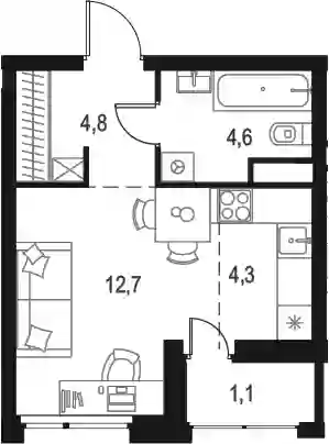 Студия, 26.4 м², 11 эт. в ЖК Микрогород «В лесу» Корпус 26/1