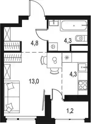 Студия, 26.4 м², 13 эт. в ЖК Микрогород «В лесу» Корпус 26/1