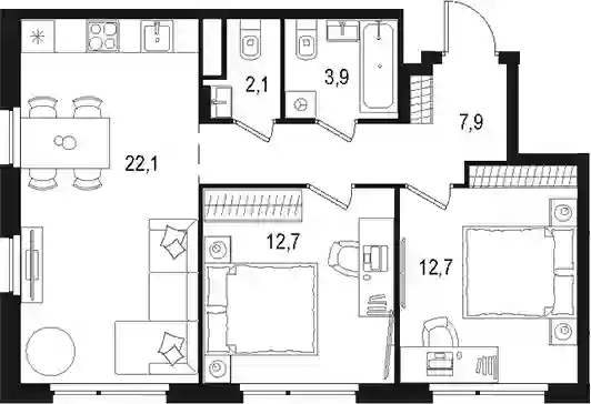 3-к.квартира, 61.4 м², 12 эт. в ЖК Микрогород «В лесу» Корпус 26/3