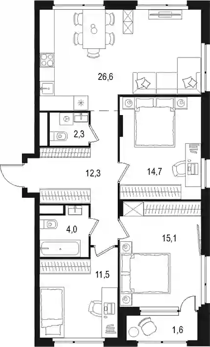 4-к.квартира, 86.5 м², 12 эт. в ЖК Микрогород «В лесу» Корпус 26/3