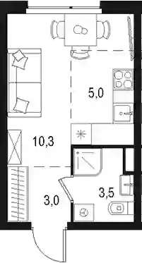 Студия, 21.8 м², 2 эт. в ЖК Микрогород «В лесу» Корпус 26/3