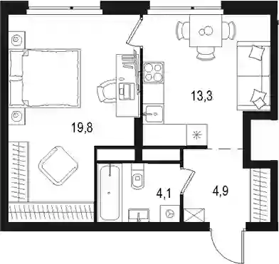 1-к.квартира, 42.1 м², 13 эт. в ЖК Микрогород «В лесу» Корпус 26/4