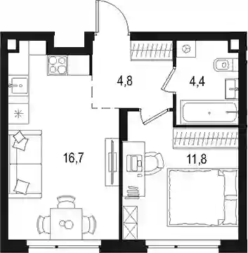 2-к.квартира, 37.7 м², 2 эт. в ЖК Микрогород «В лесу» Корпус 26/4