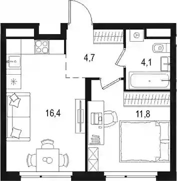 2-к.квартира, 37 м², 13 эт. в ЖК Микрогород «В лесу» Корпус 26/4