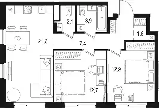 3-к.квартира, 62.3 м², 7 эт. в ЖК Микрогород «В лесу» Корпус 26/4