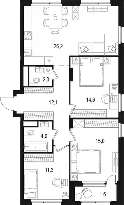 4-к.квартира, 85.5 м², 12 эт. в ЖК Микрогород «В лесу» Корпус 26/5