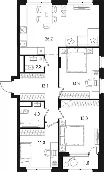 4-к.квартира, 85.5 м², 9 эт. в ЖК Микрогород «В лесу» Корпус 26/5