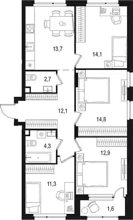 4-к.квартира, 85.9 м², 2 эт. в ЖК Микрогород «В лесу» Корпус 26/5