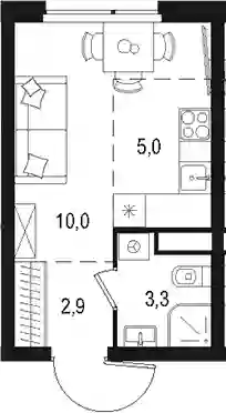 Студия, 21.2 м², 5 эт. в ЖК Микрогород «В лесу» Корпус 26/5