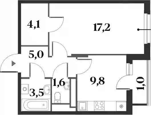 14 172 183 ₽1-к.квартира, 40.3 м², 4 эт.