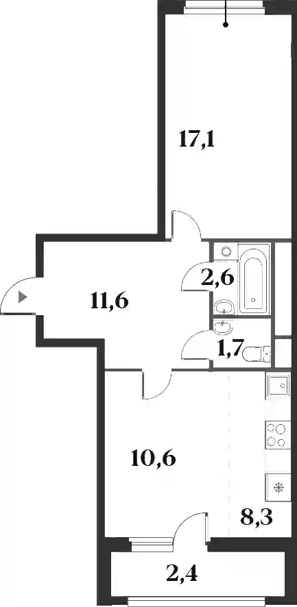 14 812 332 ₽1-к.квартира, 40.6 м², 2 эт.