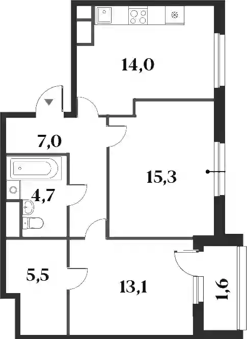 15 135 852 ₽2-к.квартира, 51.3 м², 3 эт.