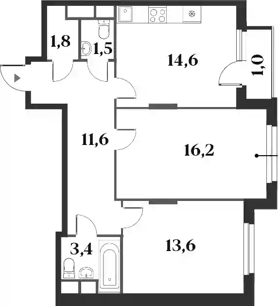 16 336 608 ₽2-к.квартира, 52.3 м², 2 эт.