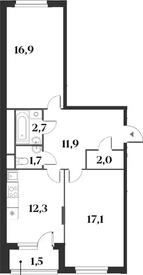 15 086 983 ₽2-к.квартира, 59.6 м², 1 эт.