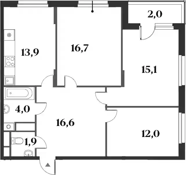 18 838 034 ₽2-к.квартира, 61.1 м², 3 эт.