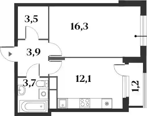 16 101 290 ₽2-к.квартира, 48.6 м², 3 эт.