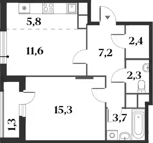 15 407 852 ₽2-к.квартира, 46.7 м², 2 эт.