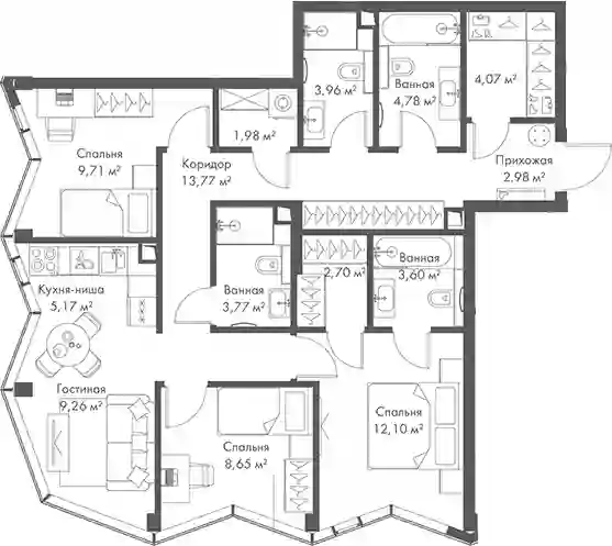 В комплексе предложено множество планировочных решений: в наличии квартиры, как классического типа, так и европланировки. Квартиры сдаются с подчистовой отделкой, высотой потолков 3 м и панорамным остеклением в пол.