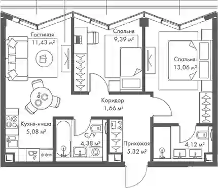 Квартиры в ЖК представлены классическими планировками от студий до трёхкомнатных. Есть возможность выбрать квартиру без отделки, с подчистовой и чистовой отделкой.