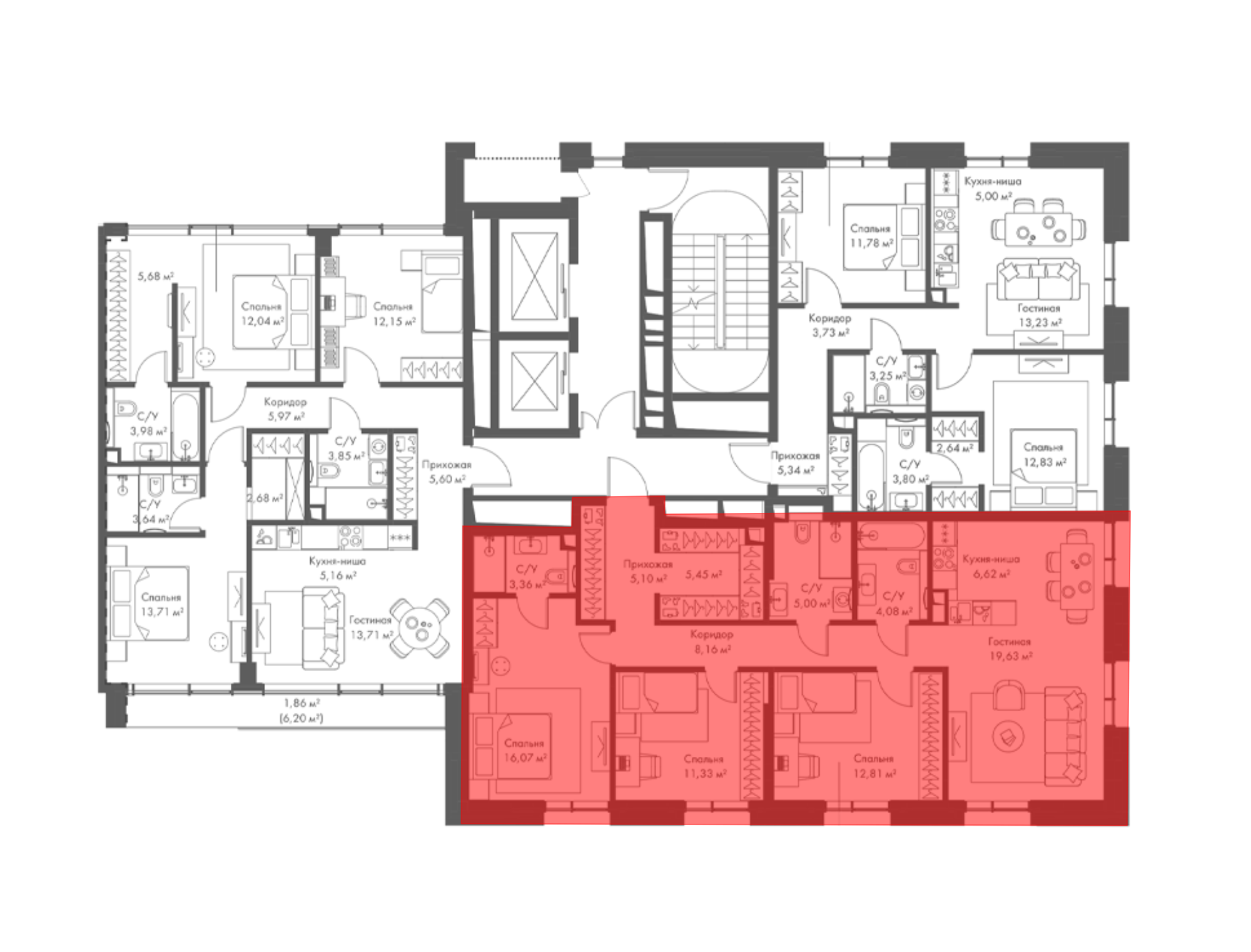 Планировочные решения включают как классические форматы, так и европланировки. Квартиры сдаются без отделки, с потолками высотой 3,1 метра и увеличенной площадью остекления. В некоторых квартирах предусмотрены просторные террасы.