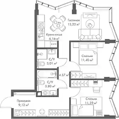 В комплексе предложено множество планировочных решений: в наличии квартиры, как классического типа, так и европланировки. Квартиры сдаются с подчистовой отделкой, высотой потолков 3 м и панорамным остеклением в пол.