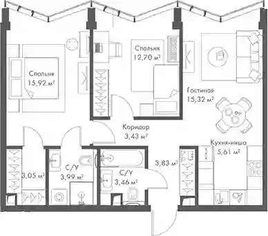 Квартиры в ЖК представлены классическими планировками от студий до трёхкомнатных. Есть возможность выбрать квартиру без отделки, с подчистовой и чистовой отделкой.