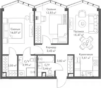 В комплексе предложено множество планировочных решений: в наличии квартиры, как классического типа, так и европланировки. Квартиры сдаются с подчистовой отделкой, высотой потолков 3 м и панорамным остеклением в пол.