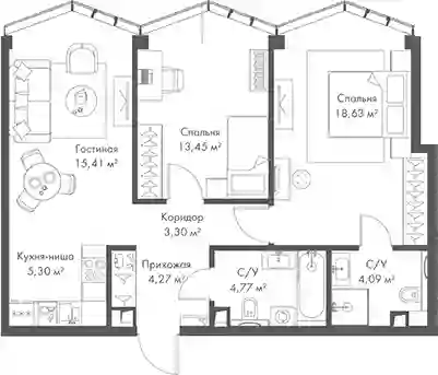 Квартиры в ЖК представлены классическими планировками от студий до трёхкомнатных. Есть возможность выбрать квартиру без отделки, с подчистовой и чистовой отделкой.