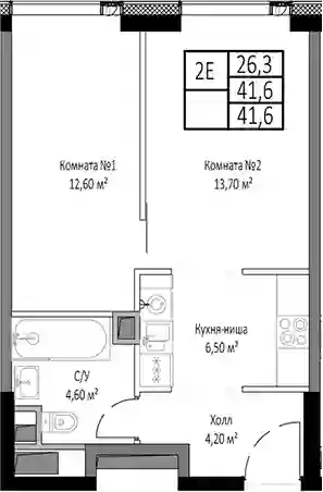 12 201 000 ₽2-к.квартира, 41.5 м², 3 эт.