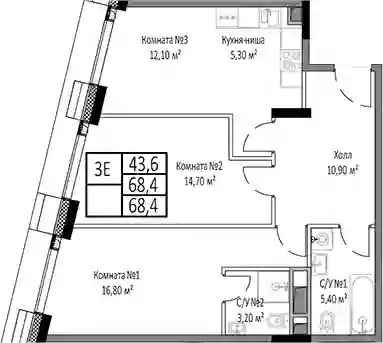 20 605 620 ₽3-к.квартира, 69.1 м², 5 эт.