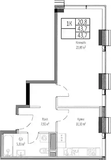 20 413 500 ₽1-к.квартира, 43.9 м², 22 эт.