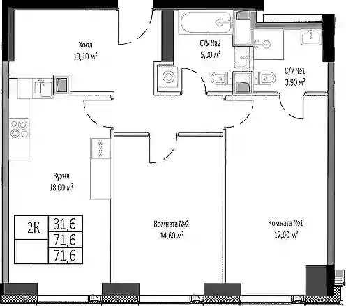 В проекте предложены однокомнатные и двухкомнатные квартиры, различные по площади и планировке. В некоторых квартирах предусмотрены лоджии с панорамным остеклением, есть планировки с 2 санузлами, изолированными гостиными и спальнями, местами для шкафов-купе. Из части квартир на верхних этажах открывается вид на Москву-реку.