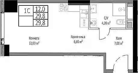 10 042 500 ₽Студия, 30.9 м², 12 эт.