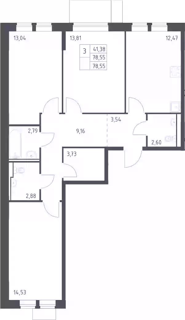 В проекте представлено множество планировочных решений — от студий до просторных 4х-комнатных квартир. Лоты сдаются с чистовой отделкой, увеличенными окнами с угловым остеклением, высотой потолков 3 метра.