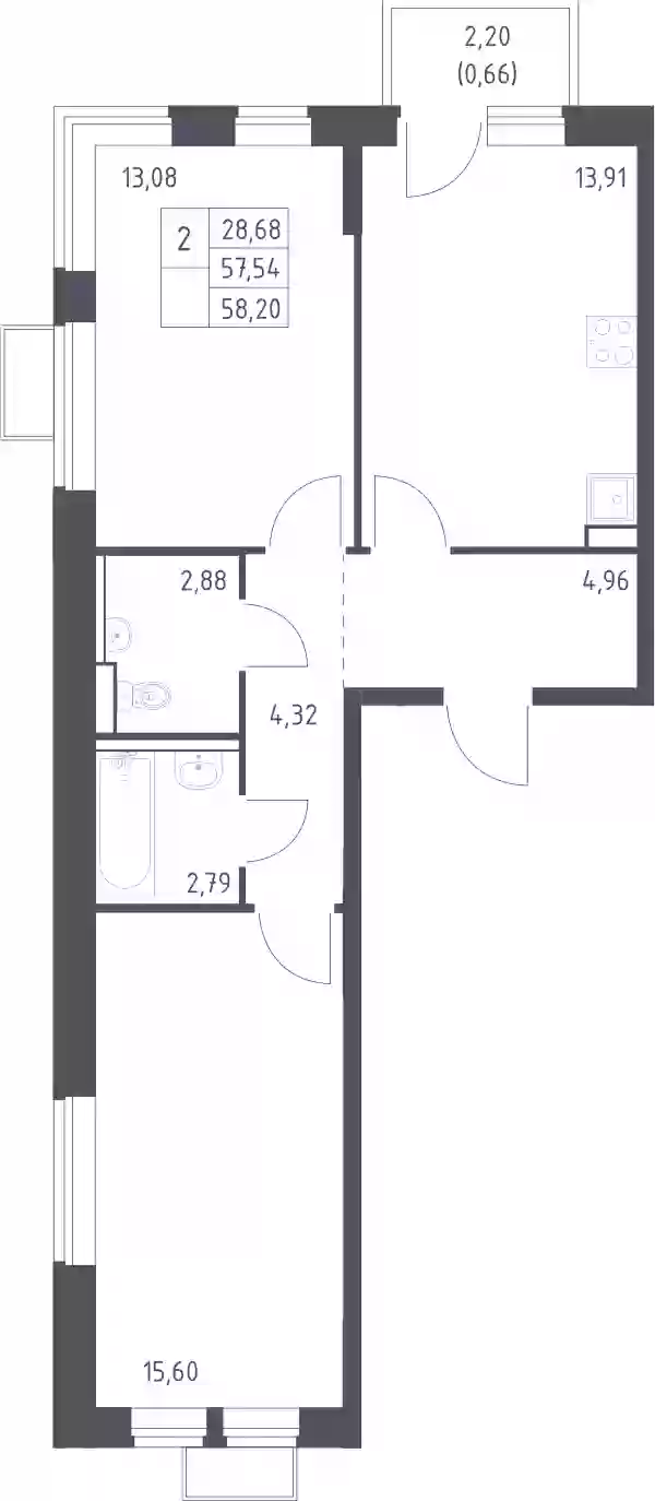 2-к.квартира, 57.54 м², 9 эт. в ЖК Молжаниново Корпус 5