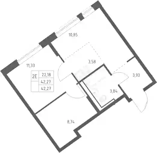 12 919 207 ₽2-к.квартира, 42.27 м², 1 эт.