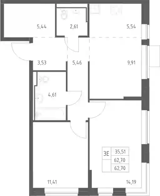 19 272 611 ₽3-к.квартира, 62.62 м², 14 эт.