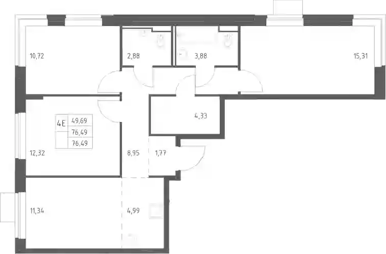 В проекте предусмотрено множество планировок — от студий до просторных 4х-комнатных квартир. Все лоты сдаются с чистовой отделкой, высотой потолков до 3,95 метров и панорамными окнами.