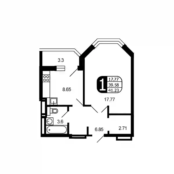 4 850 000 ₽1-к.квартира, 39.58 м², 7 эт.