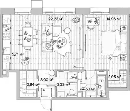 Квартиры в ЖК представлены классическими планировками от студий до трёхкомнатных. Есть возможность выбрать квартиру без отделки, с подчистовой и чистовой отделкой.