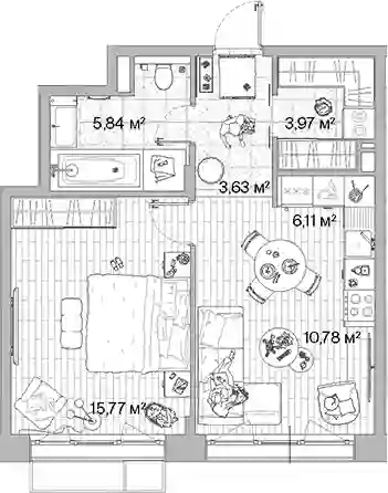 Планировочные решения включают как классические форматы, так и европланировки. Квартиры сдаются без отделки, с потолками высотой 3,1 метра и увеличенной площадью остекления. В некоторых квартирах предусмотрены просторные террасы.