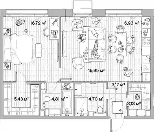 Планировочные решения включают как классические форматы, так и европланировки. Квартиры сдаются без отделки, с потолками высотой 3,1 метра и увеличенной площадью остекления. В некоторых квартирах предусмотрены просторные террасы.