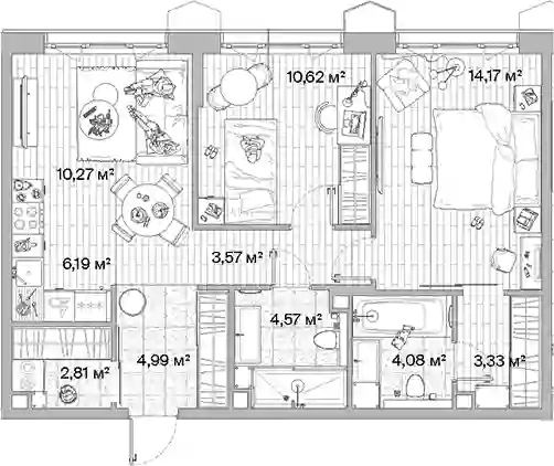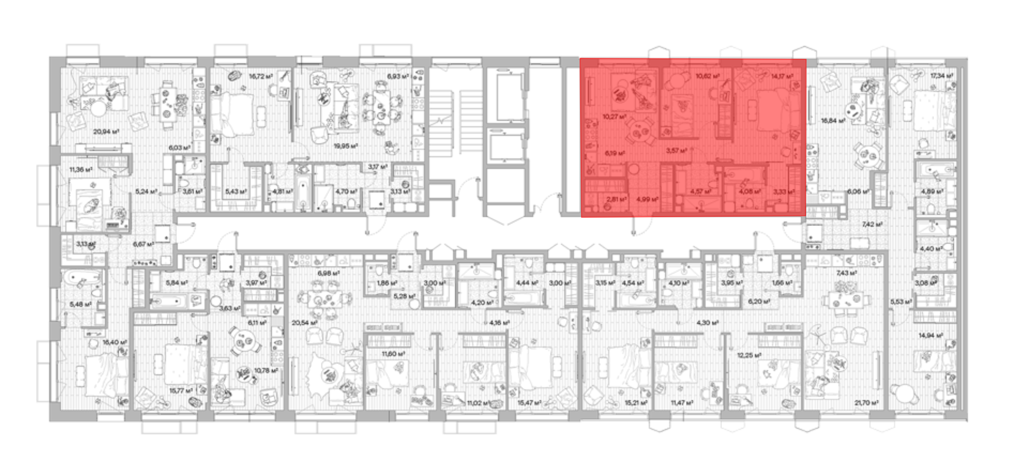 Планировочные решения включают как классические форматы, так и европланировки. Квартиры сдаются без отделки, с потолками высотой 3,1 метра и увеличенной площадью остекления. В некоторых квартирах предусмотрены просторные террасы.