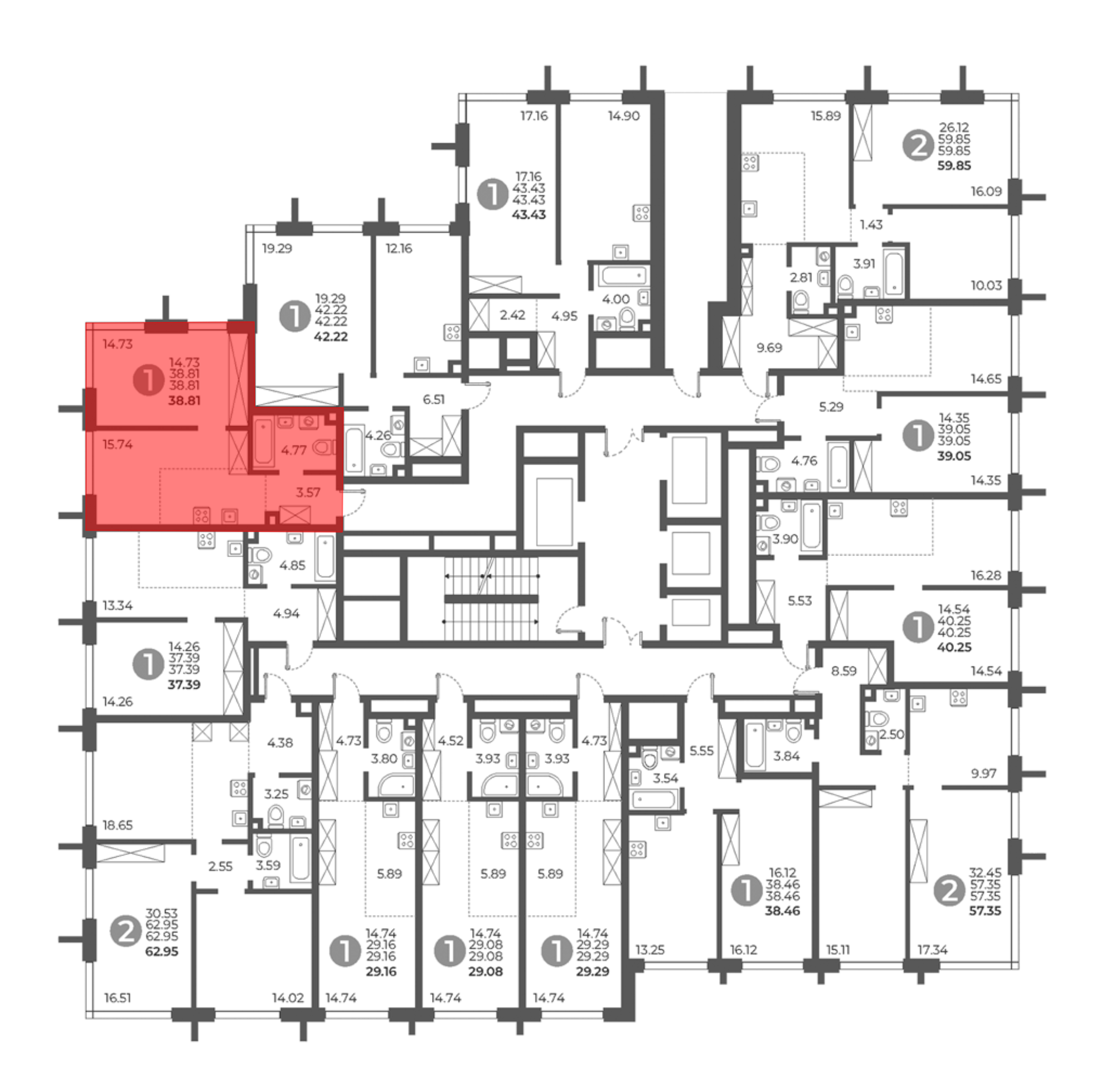 19 040 313 ₽2-к.квартира, 39.05 м², 25 эт.