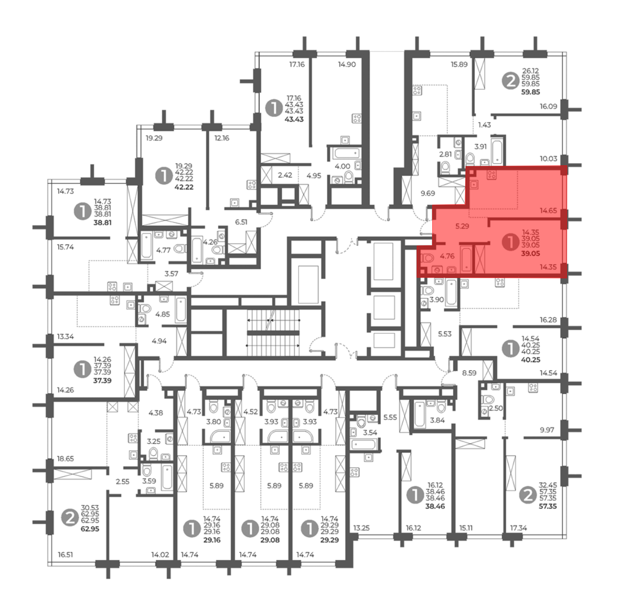 39.05 м2