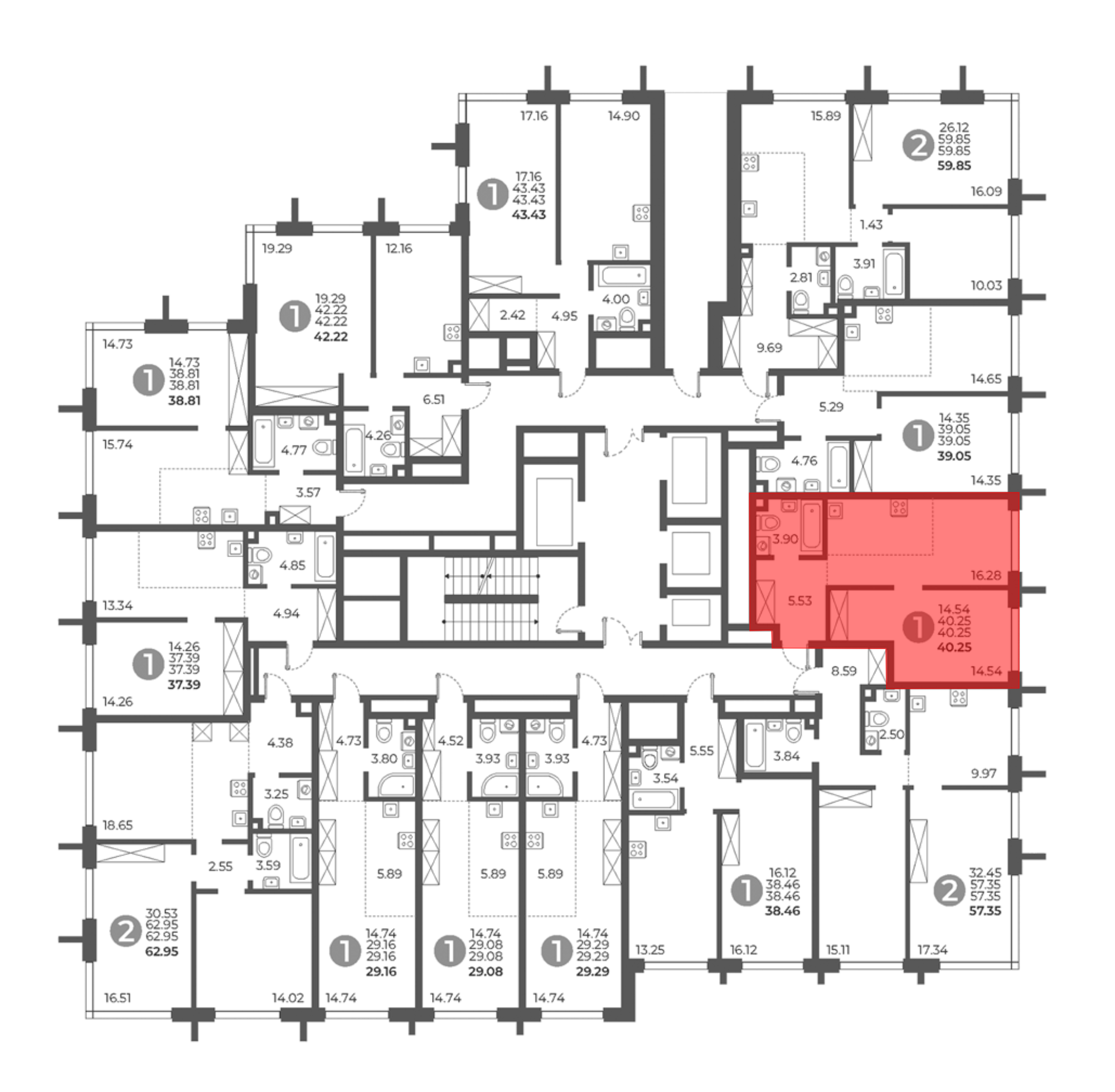 19 040 313 ₽2-к.квартира, 39.05 м², 25 эт.
