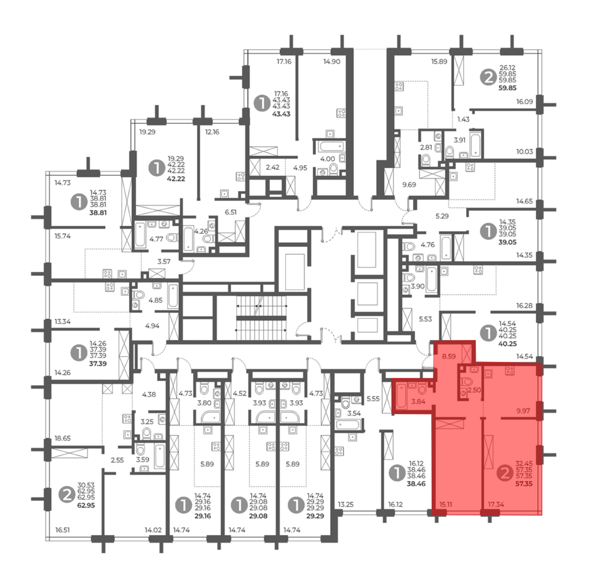24 629 118 ₽2-к.квартира, 62.95 м², 8 эт.