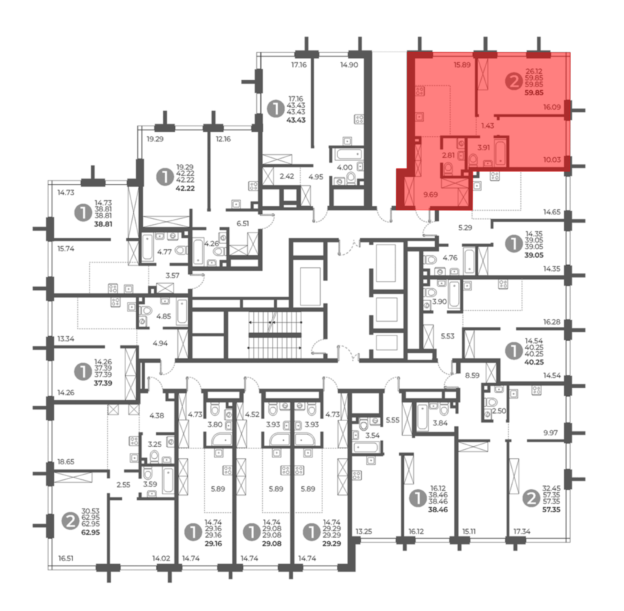 25 172 407 ₽2-к.квартира, 62.95 м², 25 эт.