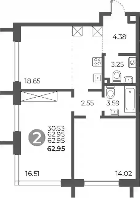 24 629 118 ₽2-к.квартира, 62.95 м², 11 эт.